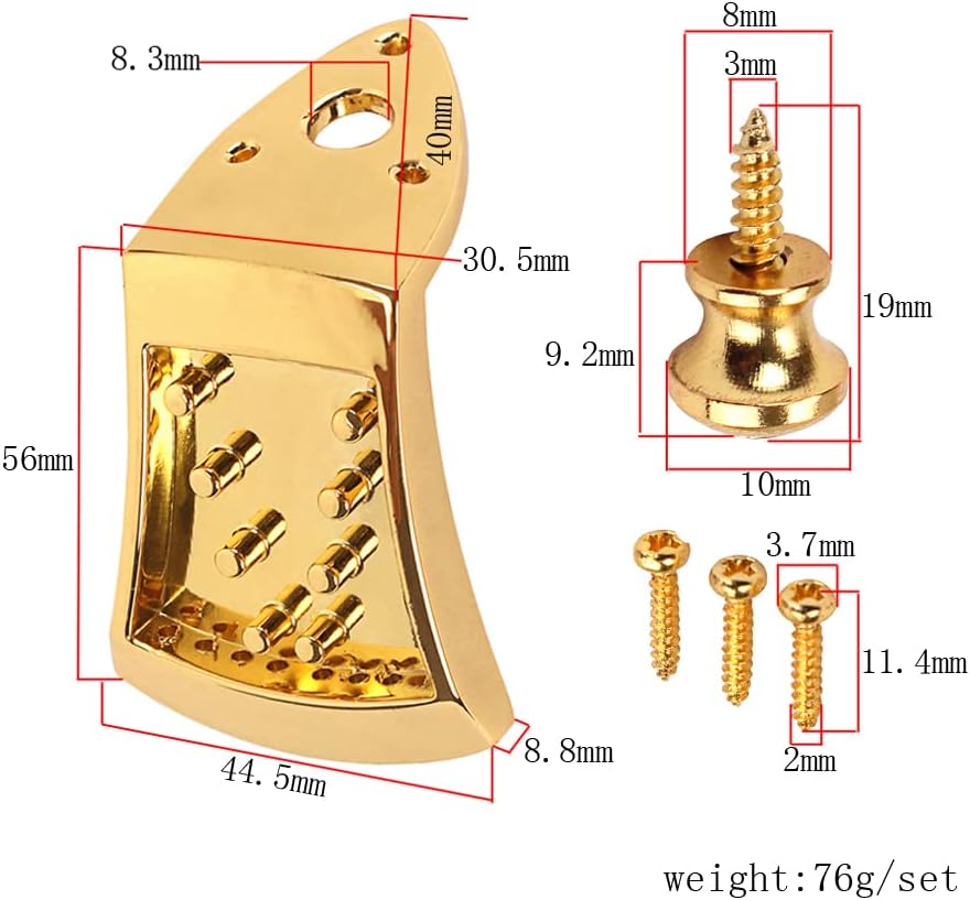 Parti di ricambio per cordiera per mandolino triangolare in metallo con viti Chiusura per cinturino per chitarra per mandolino ad arco a 8 corde (oro)