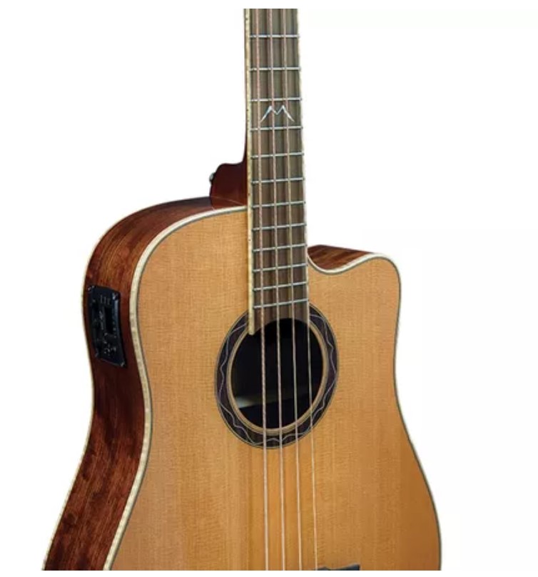 La combinazione di cedro massello sul top e ovangkol su fasce e fondo, frutto di una ricerca accurata, regala a questo strumento uno spettro timbrico molto ampio e sempre ben equilibrato su ogni singola corda. Caratteristica decisamente importante è la presenza di un sistema di amplificazione molto performante, il Fishman Flex Blend. Formato da piezo e microfono a condensatore interno, questo sistema permette di cogliere ogni sfumatura del basso grazie alla possibilità di aggiungere gradualmente al segnale del piezo il segnale ripreso dal microfono, tramite un potenziometro blend. Tra i controlli, oltre al volume di uscita ed al blend, sono presenti un accordatore a display (attivabile premendo il potenziometro del volume) e un controllo EQ che lavora in modalità mid-scooped: tenuto al minimo il segnale non viene equalizzato (flat), aumentando si vanno a ridurre gradualmente le medie frequenze in favore di basse e alte. Nel caso in cui i bassi dovessero avere problemi di feedback, situazione molto comune nell'ambito acustico, è possibile invertire la fase premendo il potenziometro dell'EQ. L'insieme di tutte queste caratteristiche rendono la Mia B400CE uno strumento adatto in contesti professionali, sia in studio di registrazione che sul palco. |