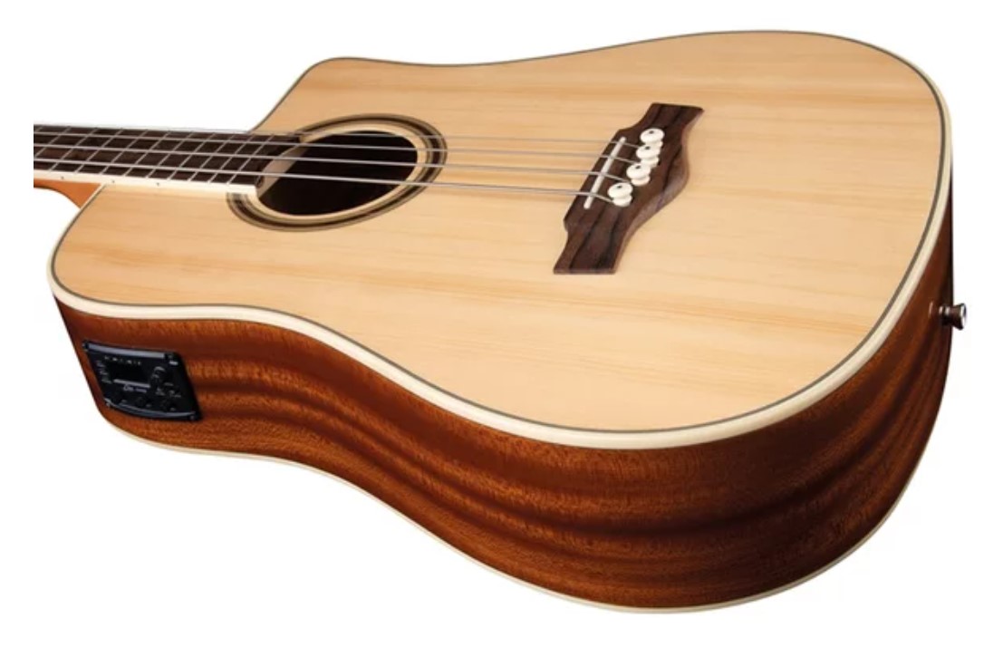 Il Basso Acustico NXT B100ce è uno strumento entry level con il body dallo shape Dreadnought a spalla mancante, un grande suono e un fantastico design. La finitura lucida, il design del ponte e della paletta, i doto di differenti dimensioni sulla tastiera ed il logo "X" al XII tasto rendono questo strumento elegante con un gusto tutto italiano. Questo Basso Acustico è caratterizzato da un top in Abete abbinato a Fasce e Fondo in Mogano, Manico in Mogano e Tasteira in South American Roupanà. È Perfetto per le prime lezione di strumento e per esercitarsi, ma anche come il prossimo strumento per i bassisti più avanzati che magari vogliono uno strumento da portare sul palco. Grazie al preamp Eko G03 con controlli di volume, bassi, medi, alti, inversione di phase e tuner incorporato, puoi facilmente connetterlo al tuo amplificatore per strumenti acustici preferito o direttamente all'impiano P.A. I bassi della serie NXT sono strumenti con caratteristiche al 100% EKO, un primo prezzo estremamente accessibile e in più una ricerca del dettaglio e della qualità per far sì che i bassi di questa serie possano essere non solo i primi, ma anche i "prossimi" bassi che vorrete suonare. |