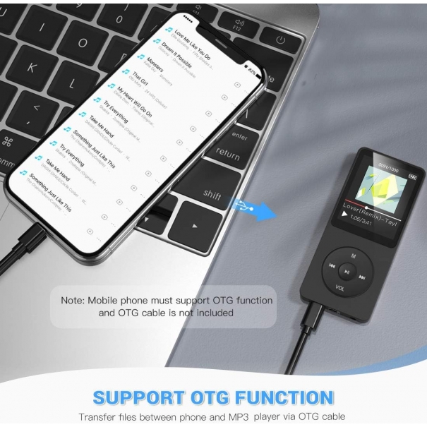 Lettore MP3 Classico 16 GB, Fino a 70 Ore di Autonomia, Schermo da 1,8 Pollici, Design Compatto e Portatile, Riproduzione Musicale HiFi Senza Perdite, Espandibile Fino a 128 GB con Scheda TF