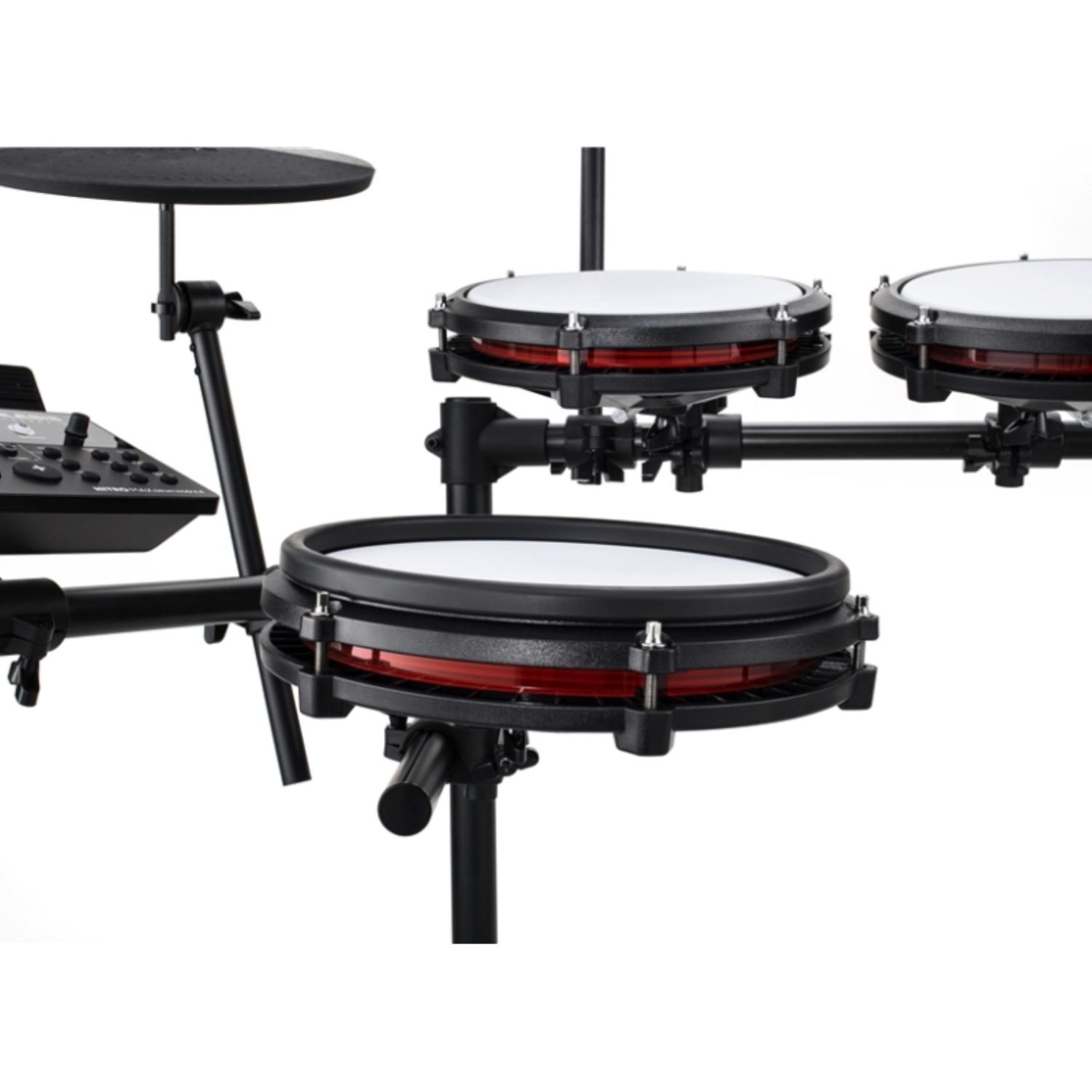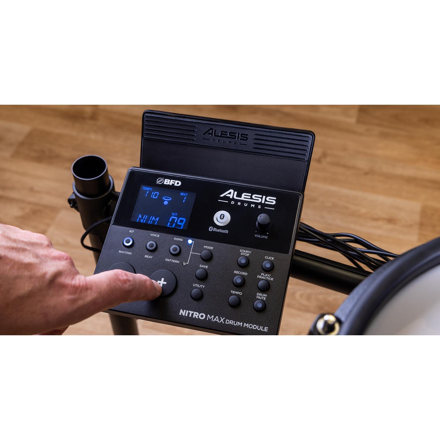 Alesis Nitro Max alza il livello della qualità sia per i batteristi principianti che per i musicisti più avanzati, offrendo un'autentica esperienza musicale con le pelli mesh di tipo premium, il tutto in un design ultra compatto. Dotato di 32 kit con suoni della rinomata libreria di campioni di batteria BFD, Nitro Max ti da la possibilità di connetterti tramite un ingresso audio wireless Bluetooth ad un qualsiasi device mobile, una serie di funzionalità di apprendimento integrate e 3 mesi di abbonamento Drumeo per lezioni illimitate con i migliori insegnanti del mondo.