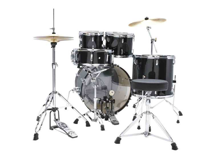 Il suono pieno e caldo e l'attacco medio offerti dal legno di pioppo lo hanno reso un pilastro della produzione di fusti per tamburi da oltre 50 anni. Il doppio supporto tom Omni-ball di Stagestar ti consente di raggiungere quasi qualsiasi angolazione semplicemente allentando un bullone a T. Il pedale della cassa è dotato di camma di azionamento a doppia catena e di regolazione dell'angolo del battente. Il robusto sgabello per batteria a doppio rinforzo è dotato di regolazione con asta filettata, che consente di raggiungere qualsiasi altezza semplicemente ruotando il sedile.