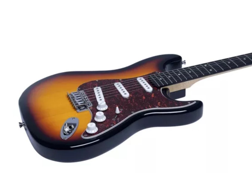 | La ST-100 Sunburst è la chitarra elettrica della serie "Tribute 100" di casa Eko Guitars con corpo in Pioppo, manico in Acero e tastiera in Laurel. È equipaggiata con pickup Eko in configurazione S-S-S, controlli di Volume e due Toni, switch blade a 5 vie e ponte con leva tremolo. Ideale per iniziare lo studio della chitarra elettrica con uno strumento performante, confortevole e con un ottimo rapporto prezzo/qualità. La serie "Tribute 100" nasce per offrire la possibilità a tutti i chitarristi e bassisti, in particolar modo i principianti, di avere uno strumento con caratteristiche simili a modelli di chitarra e basso che hanno fatto la storia della musica. Grazie al fantastico rapporto qualità/prezzo, questi strumenti di fascia economica riescono facilmente a soddisfare l'idea e la voglia di suonare uno strumento dal design classico. La ST-100 ha un corpo in Pioppo, manico in Acero e tastiera in Laurel. Monta tre pickup Eko in configurazione S-S-S, controlli di Volume, 2 Toni e selettore a 5 vie. Presenta un nut da 42mm, lunghezza della scala di 650mm, la tastiera è formata da 22 tasti con radius da 14" e in dotazione c'è anche la leva tremolo. Il suono, come anche il design, è ispirato a chitarre stratoidi, quindi con una timbrica brillante e presente: indubbiamente una chitarra molto versatile, con cui poter suonare musica blues, pop, rock, funky.  |