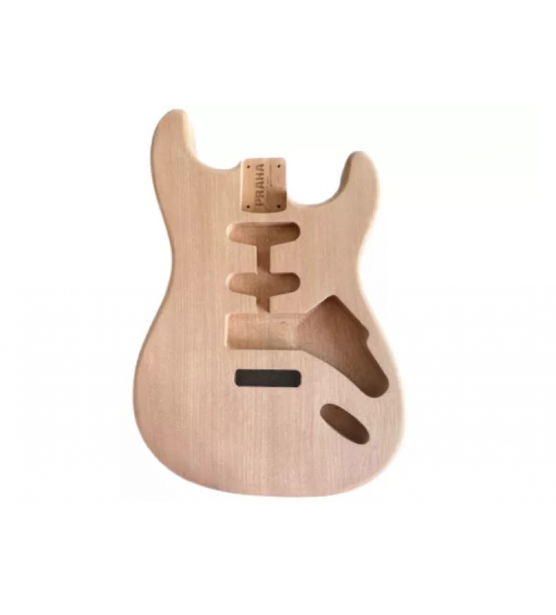Mogano "Khaya" 2 pezzi 4 fori per attacco manico Sagomato per Pick Up Single Coil/Single Coil/Humbucker Scasso per Ponte Tremolo Senza finitura DETTAGLI: Tutti i prodotti Praha sono prodotti in Repubblica Ceca utilizzando legni Europei e/o Americani