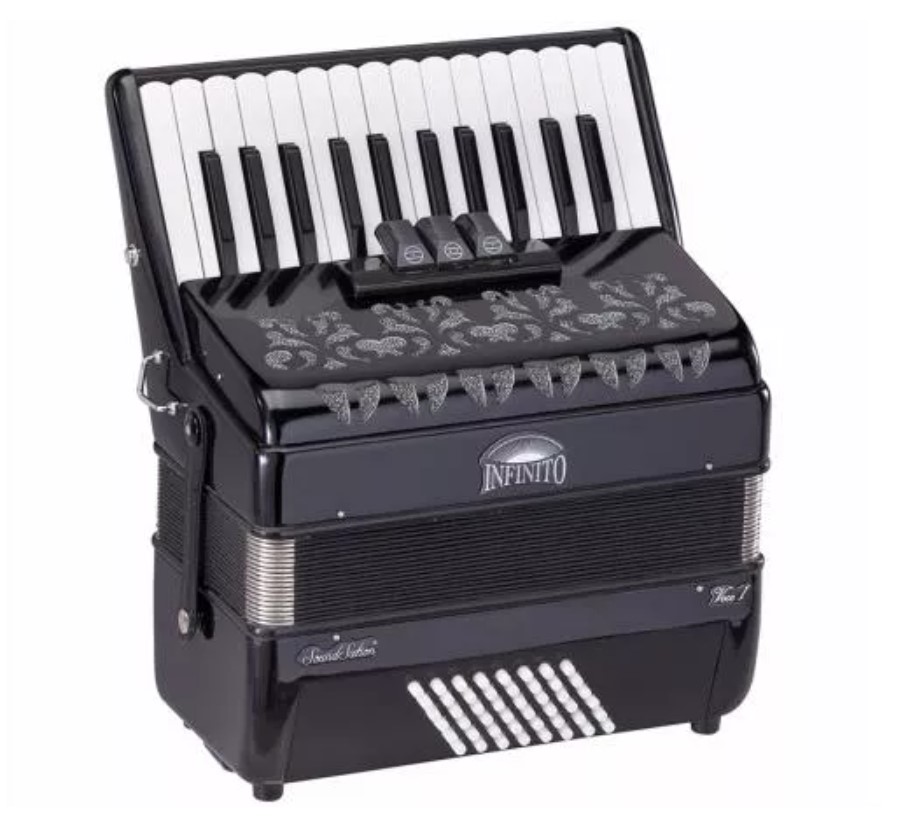 Soundsation presenta la nuova linea di fisarmoniche Infinito. Il nome non è stato scelto a caso. Infinito ricorda infatti il territorio dell'azienda, le marche, che vanta di una lunga tradizione e che ha reso la fisarmonica famosa in tutto il mondo. Progettata da un team italiano la fisarmonica Infinito sposta verso l'alto l'asticella di strumento entry level con un rapporto qualità prezzo senza pari. La gamma è completa e disponibile in diverse misure, dalla 48 fino alla 120 bassi.