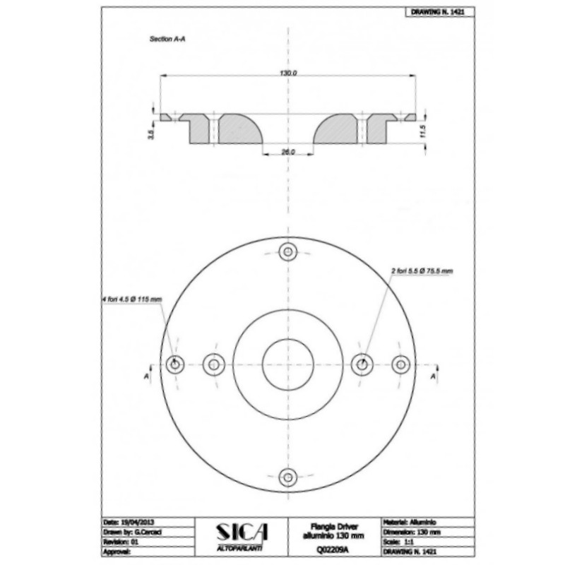 Flangia in alluminio ø 130mm da auto x Drivers da 1" - SIC-Q02209A