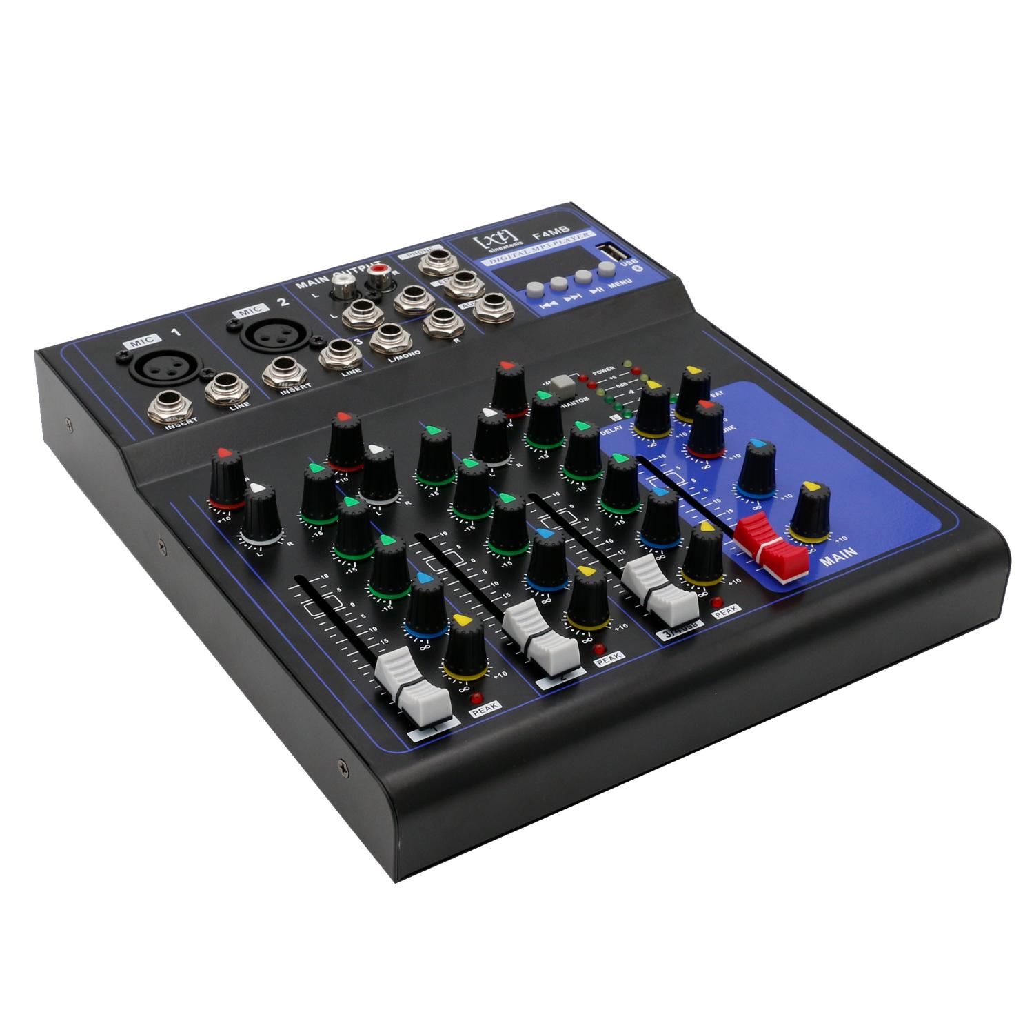 • Ogni canale è dotato di Gain, Equalizzatore a tre bande, mandata effetto, AUX, PAN, fader per controllo volume