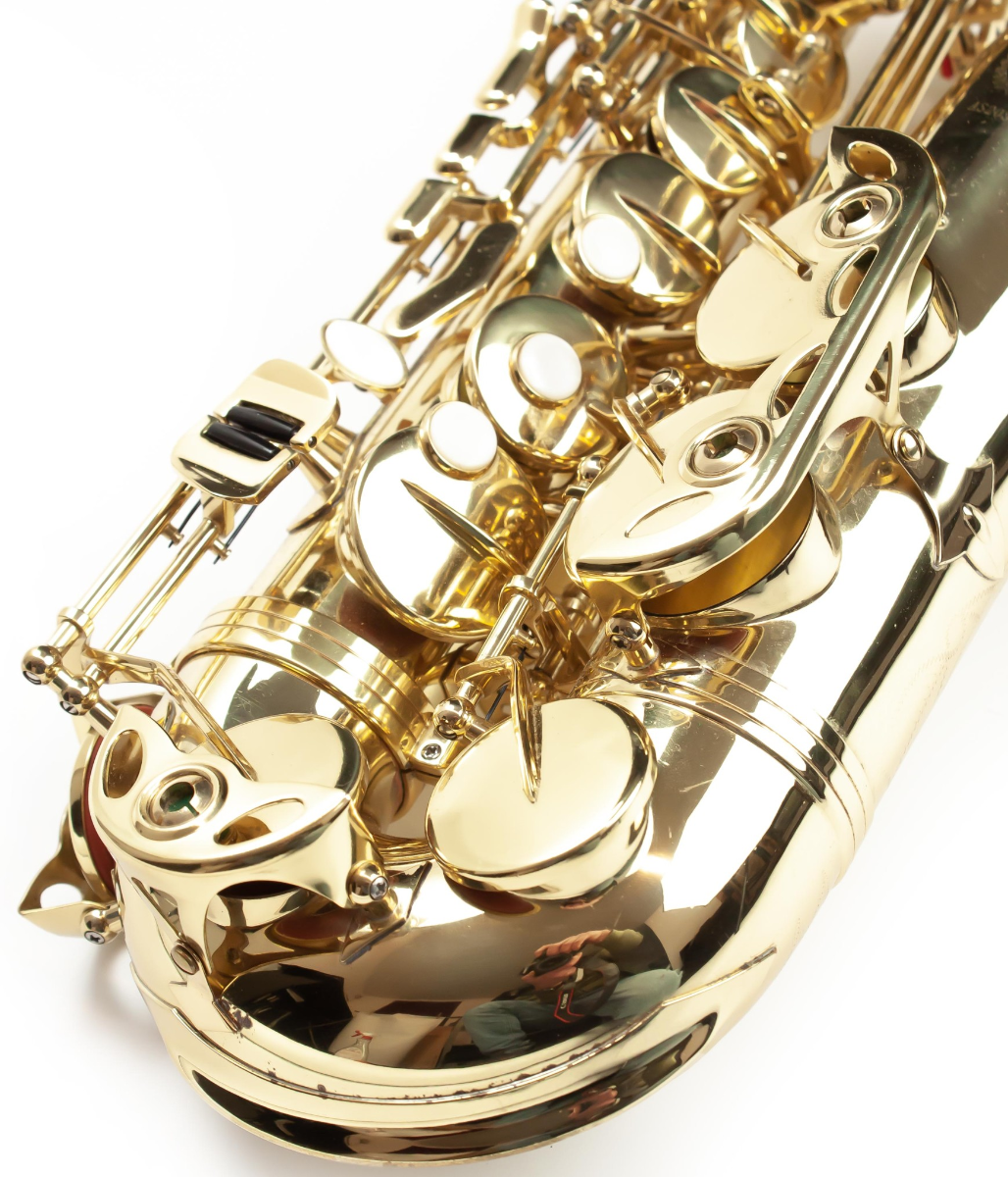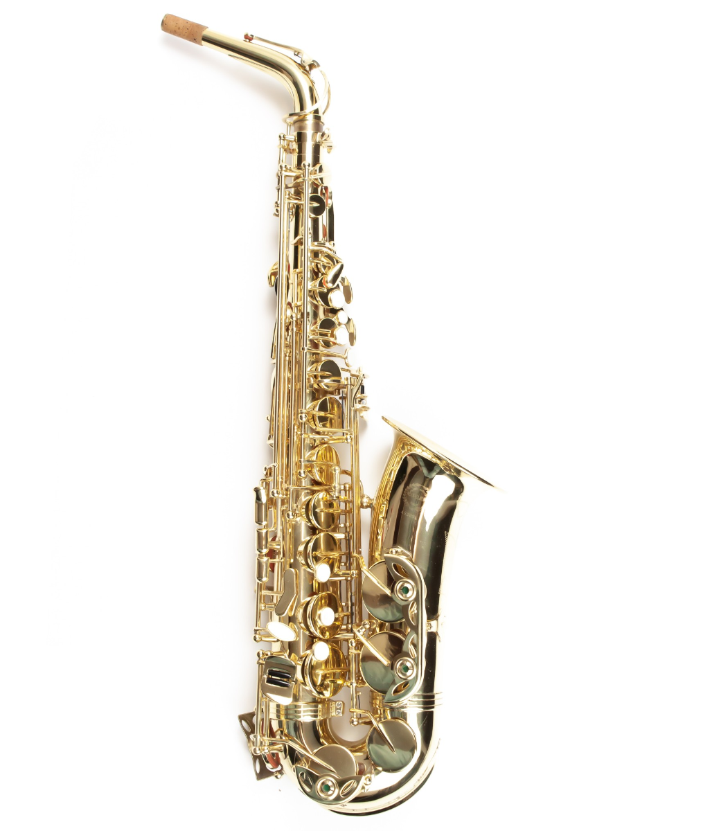 Sassofono contralto in Mib con tamponi in pelle e risonatori in metallo. Viene fornito completo di accessori e borsa per il trasporto.
