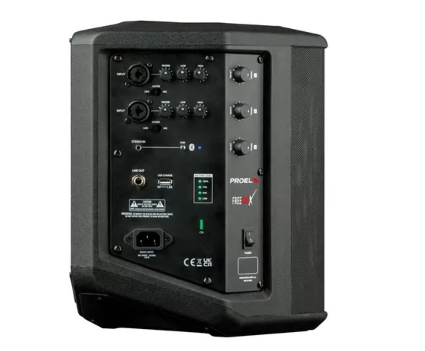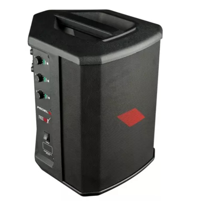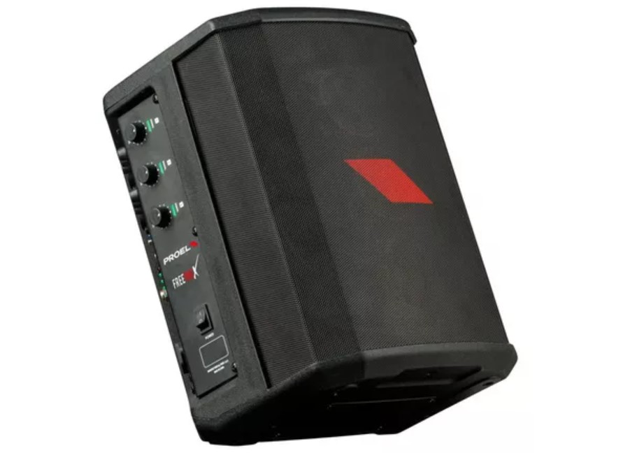 | FREEONEX è un sistema PA all-in-one alimentato a batteria con ingressi multipli e connettività BLUETOOTH. Ospitato in un cabinet in polipropilene compatto, leggero ma ultra-resistente con molteplici posizioni di puntamento, rappresenta la soluzione perfetta per musicisti, DJ e utenti PA in generale. Un array di tre altoparlanti HF da 2″ ad alta definizione accoppiati con un potente woofer LF da 6″ fornisce un suono bilanciato e coerente, un elevato livello di uscita a distanza ed un’ampia copertura di pubblico. L’elettronica all’avanguardia comprende una sofisticata sezione di preamplificazione con processore DSP e un potente amplificatore di potenza in Classe D da 150W + 50W. Il mixer digitale integrato a 2 canali mono + 1 canale stereo consente di collegare due microfoni o strumenti e un lettore stereo, ciascuno con controlli di livello indipendenti. Per gli ingressi microfono/strumento sono disponibili anche un equalizzatore a 2 bande e un riverbero digitale studio-grade. La connessione BLUETOOTH integrata consente lo streaming audio di alta qualità da dispositivi portatili senza la necessità di alcun cavo. La batteria agli ioni di litio integrata garantisce fino a 10 ore di funzionamento continuo senza alimentazione di rete, per la massima libertà di utilizzo. |
