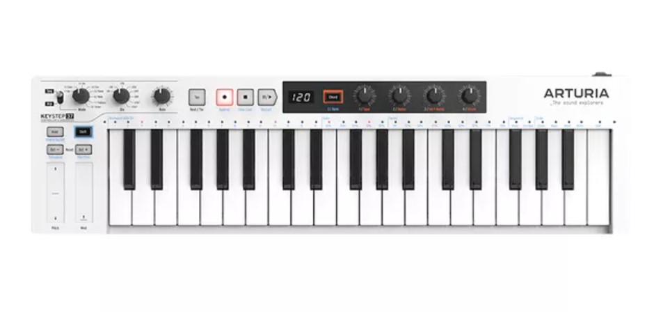 | KeyStep 37 può sembrare una versione estesa della KeyStep, uno dei più grandi successi Arturia negli ultima anni, ma in realtà è una versione ridotta della KeyStep Pro, l'ammiraglia della serie Step della casa francese. Il nuovo prodotto Arturia va al di là del semplice sequencer a 64 step con arpeggiatore e master keyboard MIDI: si tratta di un controller perfetto per ogni tipo di applicazione, versatile e adatto a tantissimi contesti diversi (dai live set alla produzione in studio). Arturia KeyStep 37 dispone di una tastiera velocity-sensitive a 37 tasti, con aftertouch e LED RGB dotato di feedback per il tracking delle note, il tutto completato da un design estremamente compatto ed ultra leggero. Al centro del pannello di controllo spicca una delle principali novità: 4 nuovi potenziometri e schermo LED, che forniscono accesso istantaneo a nuovi strumenti espressivi e a tutte le funzionalità avanzate di controllo MIDI. I controlli introdotti con questa ultima versione a 37 tasti consentono di sfruttare al meglio la nuova funzionalità Chord unica e migliorata di KeyStep 37. E' possibile scegliere tra 12 tipi di accordi ed una serie di effetti 'strum' con la possibilità di emulare al meglio i tipici strumenti a corda. La modalità Scale che consente di quantizzare automaticamente la nota più vicina alla scala prescelta, completa la ricca dotazione di questo controller all-in-one. Non esistono in questa fascia di prezzo altri controller in grado di garantire connettività MIDI e CV, sequencer polifonico e arpeggiatore, così come tutte le altre potenti funzionalità implementate nella KeyStep 37. |