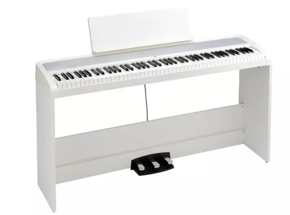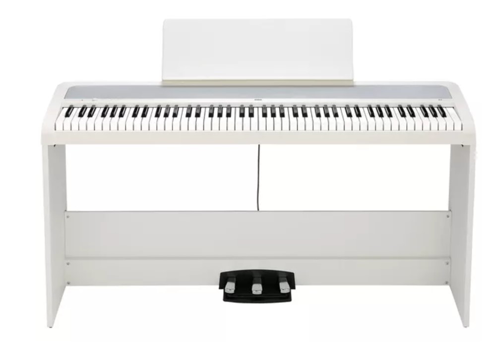 Questo set comprende il pianoforte digitale B2, un supporto di facile montaggio e un'unità a tre pedali, un insieme che offre l'esperienza di suonare un vero pianoforte a coda. Questo modello include tutto ciò che serve per divertirsi a suonare il piano seriamente. Utilizza una tastiera Natural Weighted Hammer Action (NH), che simula la sensazione tattile prodotta dalla differenza di peso dei martelli tra il registro grave ed acuto di un pianoforte acustico; mentre un elevato livello di sensibilità consente la riproduzione di un'ampia gamma dinamica. La dotazione di connessioni consente di utilizzare lo strumento con un'ampia varietà di combinazioni software e hardware. Questo apre nuove possibilità di utilizzo per un pianoforte digitale, che può diventare uno strumento di reale ausilio sia per la didattica che per la creazione musicale. La porta USB del Korg B2 può essere utilizzata per collegarsi a smartphone, tablet, o pc, usando il piano come controller MIDI per moduli sonori esterni. Inoltre, i dati d'esecuzione sul B2 possono essere registrati su uno smartphone, mentre i suoni da questo generati possono essere ascoltati tramite il sistema di amplificazione del B2. E' possibile controllare la risposta dinamica della tastiera su tre diversi livelli di sensibilità: Light, Normal, Heavy, selezionabili in base alla tecnica o alle preferenze esecutive individuali, adattando così lo strumento al proprio stile. Sono inoltre disponibili due effetti: riverbero e chorus. L'unità PU-2 di Korg è un sistema a tre pedali che replica efficacemente le tre funzioni del sistema a tre pedali di un pianoforte acustico: sustain, soft e damper. Il Korg B2 viene fornito con una versione free dell'app Skoove con 25 lezioni gratuite per l'apprendimento del pianoforte. |