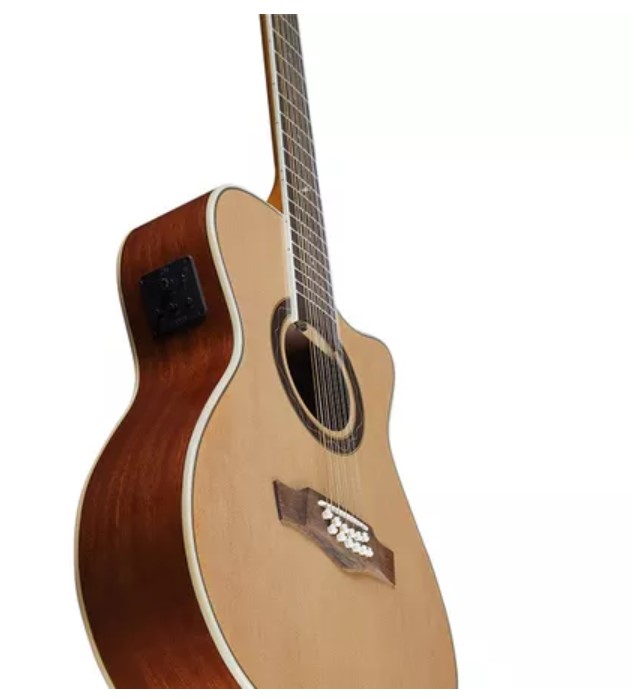 | La ONE A150ce XII è la chitarra acustica elettrificata a 12 corde della serie ONE di Eko Guitars, amplificata con sistema piezo Fishman Flex Plus T. La serie ONE è un "trait d'union" di grande stile tra la fascia economica e le Solid Top. Abete Sitka per il top, fasce e fondo in Mogano, binding arrotondato per il massimo comfort. Tastiera e ponte sono in South American Roupanà, meccaniche Eko die-cast. Adatta per il Live, è fornita di un sistema Fishman Flex Plus T dotato di controllo del tono (bassi e alti), accordatore a display con funzione mute, pulsante di inversione di fase antifeedback, volume ed un semplice accesso al vano batteria. La serie ONE comprende modelli Auditorium cutaway, Dreadnought con e senza spalla, modelli elettrificati e non, fino alla A150ce XII che rappresenta l'unico modello a 12 corde della serie. |