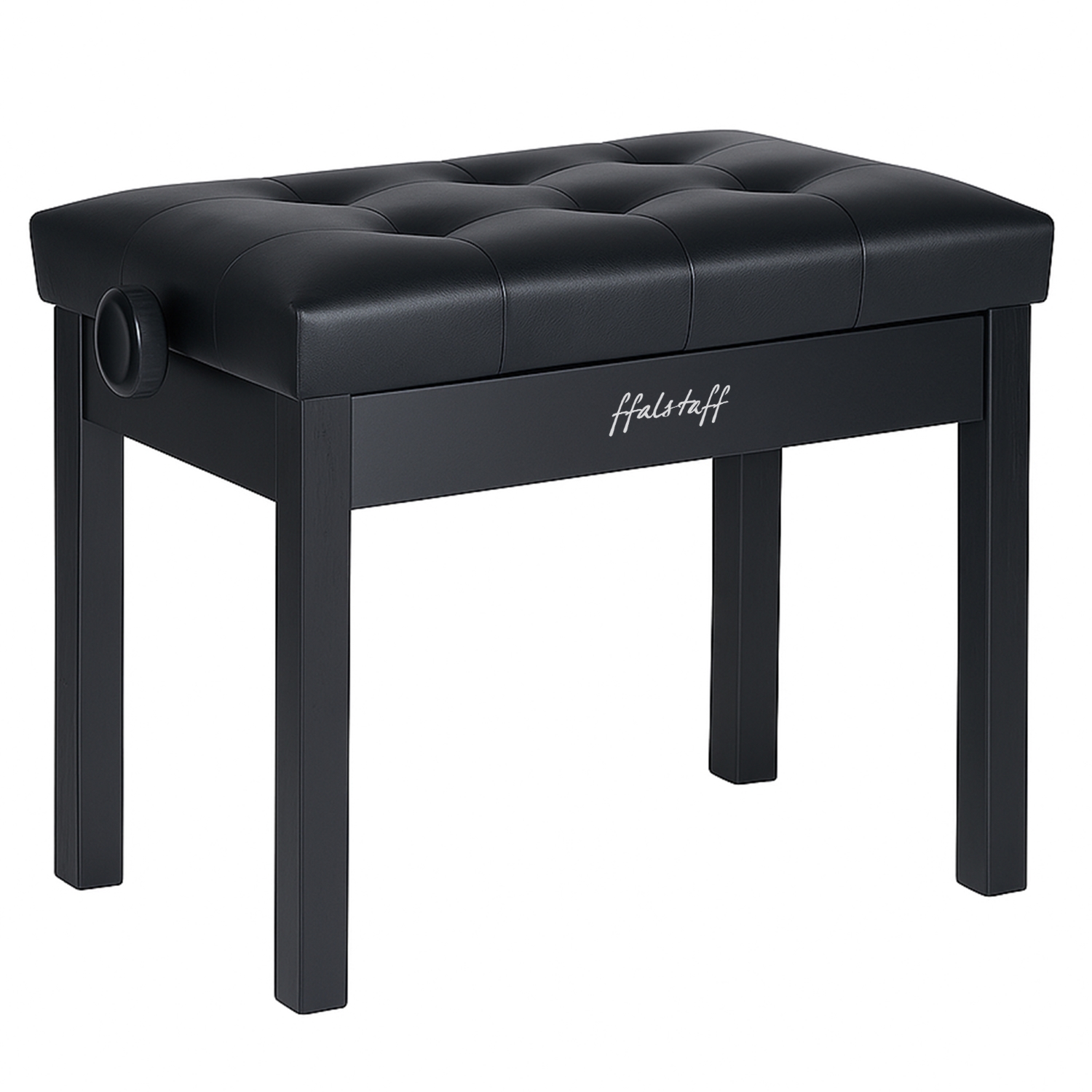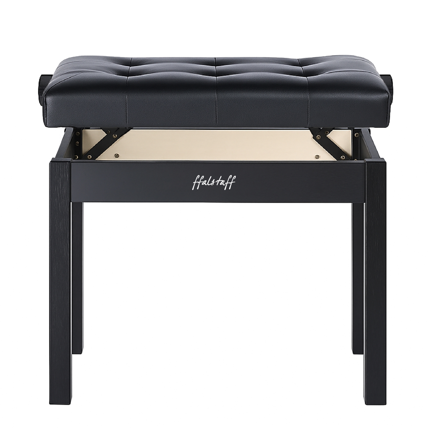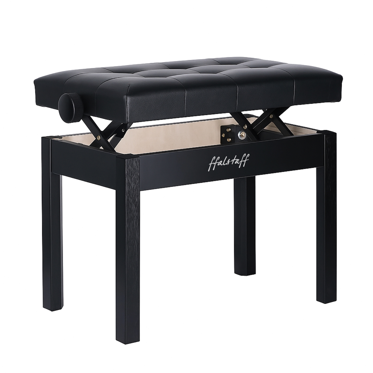 Dotata di un comodo sedile imbottito, rivestito in eco-pelle, struttura di legno solido e durevole può essere regolata a diverse altezze per adattarsi a tutti i tipi di pianoforte.
