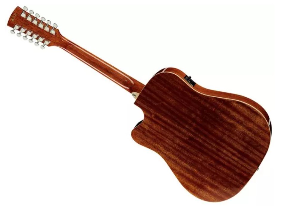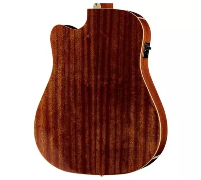 Le chitarre acustiche Ibanez della serie Performance sono realmente abbordabili, ma sono realizzate con la stessa cura artigianale e collaudate come la serie Artwood "top-of-the-line". Il modello PF15ECE presenta un corpo dreadnought con una spalla mancante veneziana, un top in abete rosso laminato su fondo e fasce in Okoume, ed una finitura lucida. La buca rotonda ha una rosetta in acrilico bianco e nero ed un battipenna nero. Il manico in Nyatoh ha una tastiera in alloro da 20 tasti e piccoli intarsi bianchi. |