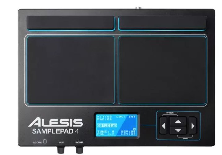 | Alesis SamplePad 4 è una percussione elettronica dotata di 4 pad in gomma sensibili alla dinamica circondati da LED di colore blu, che permette di riprodurre da ciascuno dei pad e dall'ingresso trigger addizionale i suoni integrati nella sua wavetable, oppure i tuoi file audio in formato .wav (mono o stereo) a 16bit/48, 44,1, 32, 22,05, e 11,025kHz residenti su una card SD. La dotazione sonora di fabbrica comprende 10 kit programmati usufruendo di una wavetable interna composta da 25 campioni trai i più richiesti e utilizzati; in più, una raccolta di circa 370MB che include sample one-shot e loop in formato .wav è scaricabile gratuitamente dal sito Alesis. Nel retro del prodotto è presente un ingresso trigger al quale possiamo collegare un pad o pedale a doppia o a singola zona. Alesis SamplePad 4 consente di riprodurre da ognuno dei quattro pad e dall'opzionale collegato all'ingresso trigger fino a 2 campioni assegnati a differenti layer di velocity impostabili dall'utente, oppure all'unisono. |