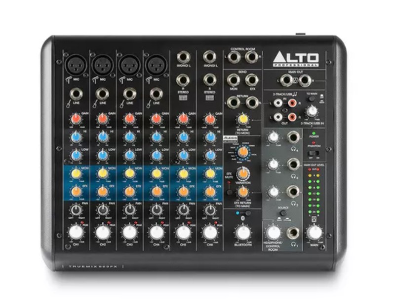 | Alto Professional TrueMix 800 FX è un mixer audio portatile con effetti DSP integrati che offre tutte le funzionalità essenziali necessarie per la registrazione domestica, lo streaming live, il podcasting o le perfomance. Il TrueMix 800 FX offre 16 effetti tra cui chorus, flange e un assortimento di delay e riverberi di alta qualità. C'è anche un comodo canale Bluetooth per lo streaming facile dai tuoi dispositivi personali. Una caratteristica unica della serie TrueMix, il canale Bluetooth supporta anche l'accoppiamento telefonico senza feedback utilizzando la tecnologia mix-minus. Sono presenti otto ingressi analogici con circuiti ad alta dinamica per ridurre al minimo il rumore e il clipping nel segnale. I quattro canali di ingresso Mic offrono ingressi XLR ideali per collegare microfoni dinamici o microfoni a condensatore con alimentazione phantom a 48V. Questi canali dispongono inoltre di ingressi di linea bilanciati da 1/4" per il collegamento di strumenti e altri segnali a livello di linea. Ci sono anche due canali di ingresso stereo, ciascuno con doppi ingressi TRS bilanciati da 1/4". Questi ingressi sono perfetti per le tue sorgenti audio a livello di linea. Tutti i canali sono dotati di un equalizzatore a due bande con manopole codificate a colori che semplificano la composizione del suono perfetto durante il funzionamento in situazioni di scarsa illuminazione. Sono inclusi anche cappucci delle manopole extra in modo da poter personalizzare completamente l'aspetto del tuo TrueMix 800 FX. Anche il collegamento di TrueMix 800 FX al computer è velocissimo, con connettività plug and play su Windows e macOS. TrueMix 800 FX è un mixer audio compatto ricco di funzionalità, perfetto per l'utilizzo in movimento. |