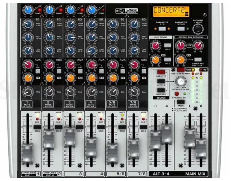 | Equipaggiati con preamplificatori microfonici premium e di un robusto set di funzionalità tipicamente riservati alle console più costose, i mixer di nuova generazione della serie XENYX Q USB sono in grado di gestire concerti dal vivo e di fornire strumenti per registrazioni di qualità professionale. Il Behringer QX1204USB dispone dell'integrazione "wireless-ready" per i microfoni USB della Serie ULM, di un interfacce USB / Audio, compressori "One-Knob" e motore effetti Klark Teknik. |