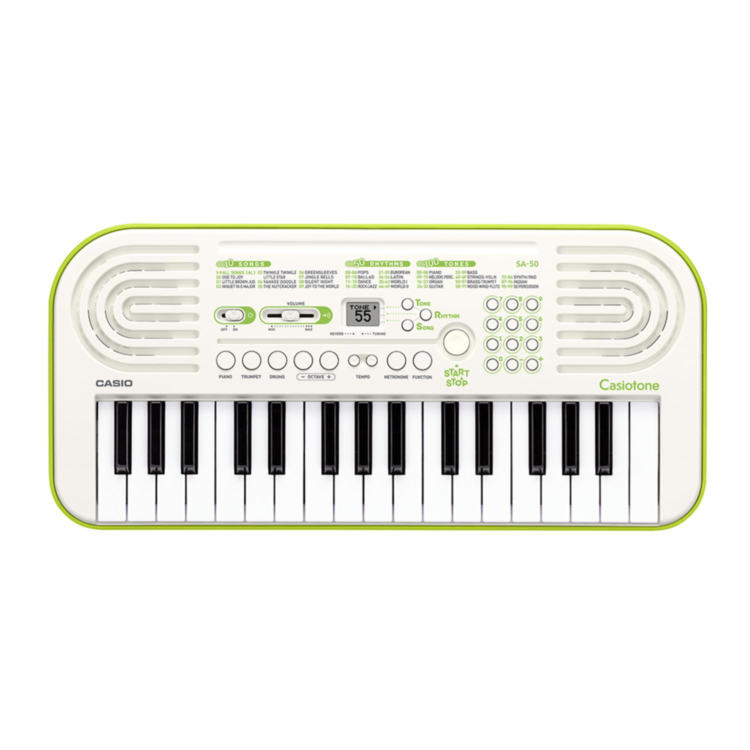 Con i nuovi modelli SA50 e SA51 Casio raggiunge ancora una volta il suo obiettivo di rendere la musica accessibile a tutti, grandi e piccoli. Le nuove mini tastiere SA50 e SA51 si distinguono per un accesso ancora più semplice alle principali funzioni e includono per la prima volta metronomo e riverbero, nonché transpose e octave shift.